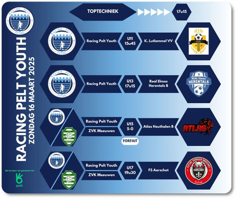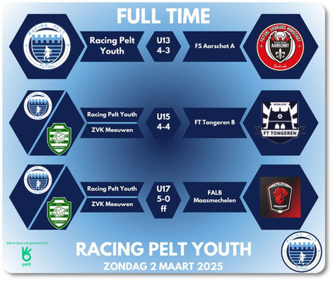 Vandaag een gevuld programma bij Racing Pelt Youth.